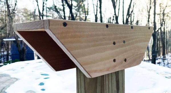 Bracket is 4.75W 4.5D 16L, designed and hand crafted this bracket sets on a 4x4 post is made from cedar Includes screws and instructions for easy installation.